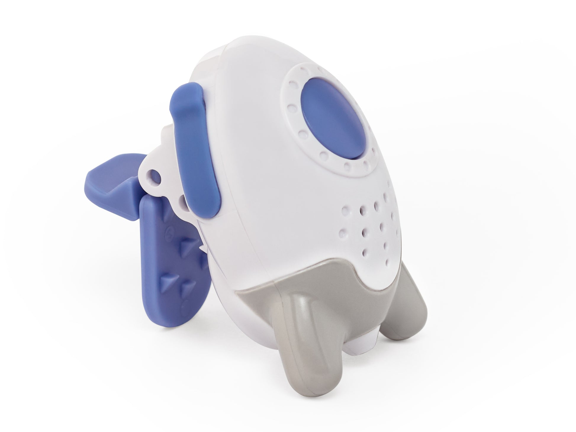 O design versátil permite que o coloques em pé ou o prenda fora do alcance do teu bebé.